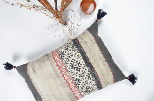 Cotton Hand Block Printed Cushion Cover with Embroidery – Black & Red