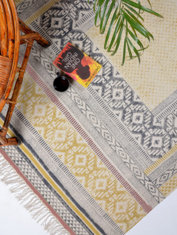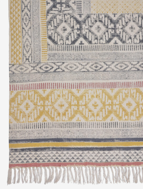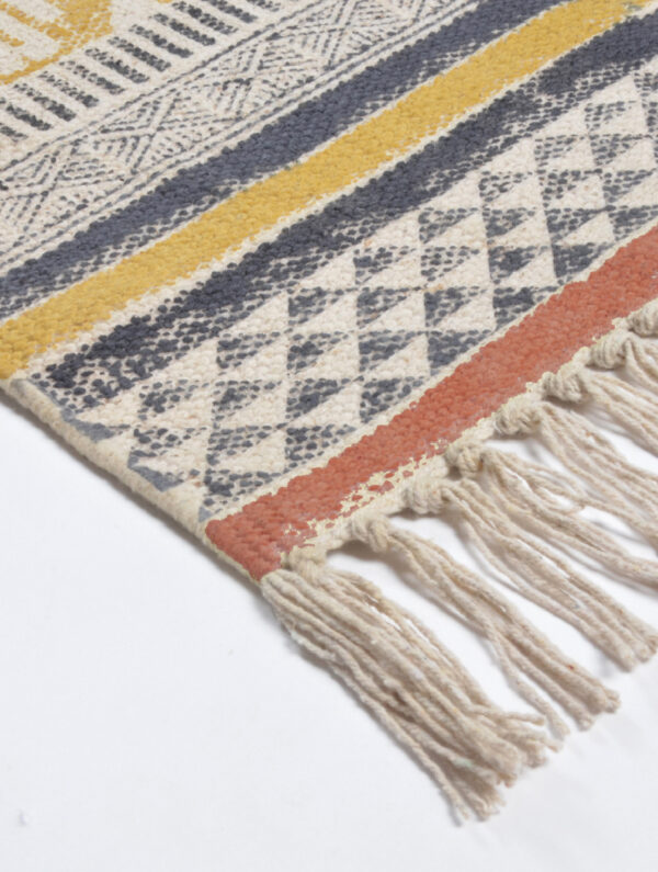 ORNA rug offers a geometric print and exotic allure. Celebrate artisan making at ORNA HOUSE .This fabulous rug combines traditional Indian hand block printing with lots of texture. A beautiful cushion cover from ORNA with simple geo design on a off white background. ORNA Rugs are beautiful quality and all hand block- printed using wooden blocks by artisans in Jaipur (India).